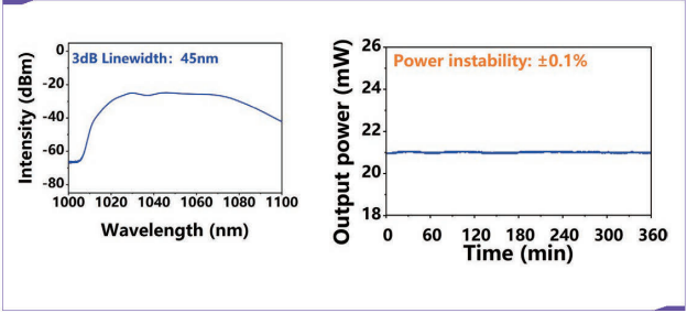The 1.0 μm ASE test light source adopts an optimized doped-fiber laser optical path, combined with high-precision ATC and ACC (APC) control circuits, ensuring high-accuracy and high-stability operation of the laser.